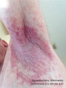 Variability in the signs and severity of Hailey-Hailey disease is observed even among family members, with most cases having a family history of the disorder [9]. The primary presentation of HHD usually involves an erosive, blistering skin rash that predominantly affects the groin, neck, armpits, and chest [10], which is represented in Figure 1 [11]. Lesions in Hailey-Hailey disease may develop a yellow, crusty layer, and individuals may experience a sensation of burning or itching. The separation of lesions can lead to severe, cracked skin, and unpleasant odors may arise from secondary skin infections. HHD is characterized by relapsing and remitting skin lesions, meaning they resolve spontaneously but may occasionally