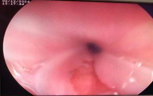 Figure 1: Salmon-colored mucosa at the proximal esophagus (17cm from the incisors)