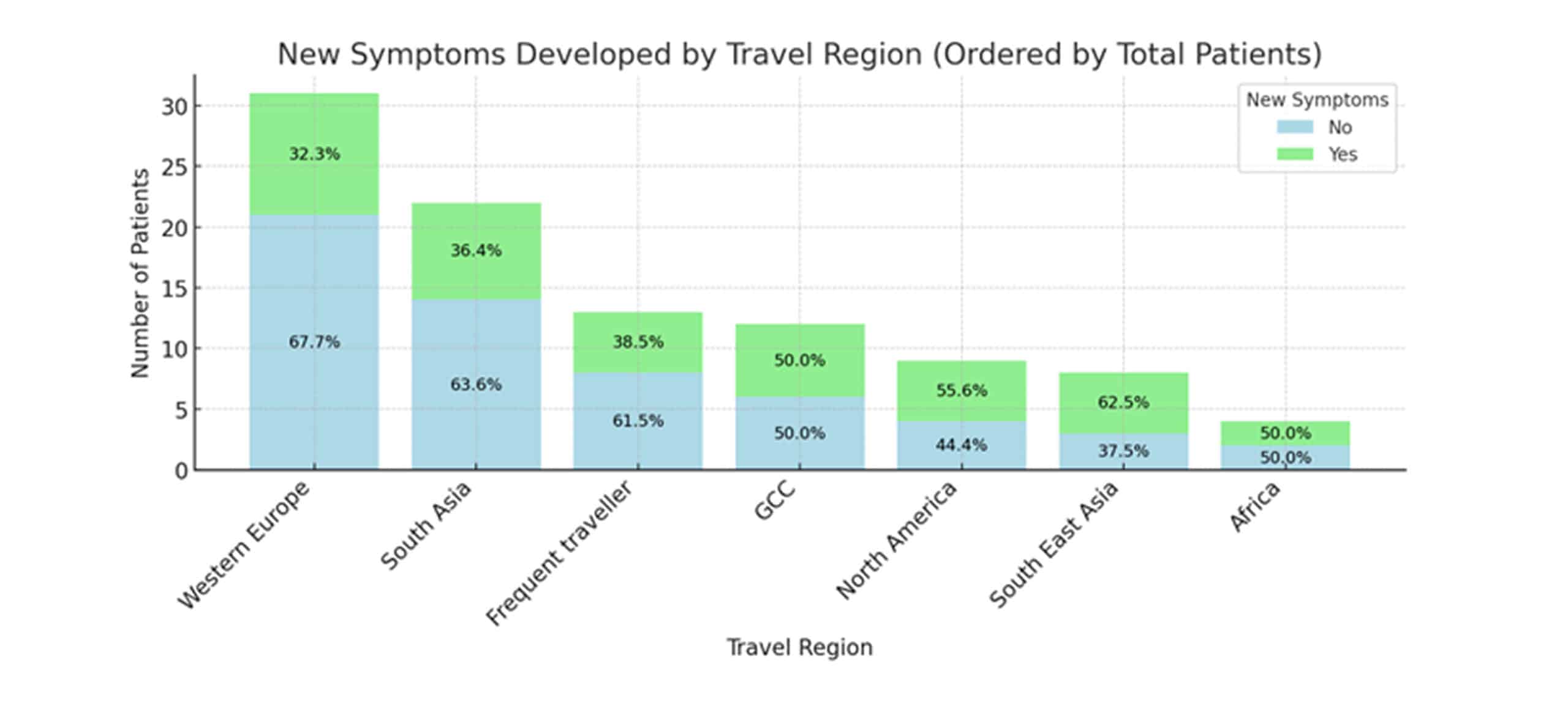 Figure 4: New symptoms developed by travel region
