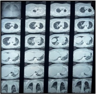 A 37-year-old woman was admitted to the outpatient department with symptoms of fever, increasing shortness of breath, and rheumatoid arthritis, along with joint pain deterioration for the last year. Her chronic physical history calls for polyarticular, symmetrical pain in the joints that initially set in ten years back, the large joints, such as the knees and the wrists, and then spread to the smaller joints and the temporomandibular joint. These symptoms were treated with medication temporarily.