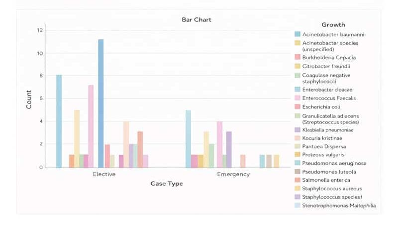 Figure 1: Bacterial isolates from SSI based on case type from patients with SSI with culture growth and sensitivity test in MCM