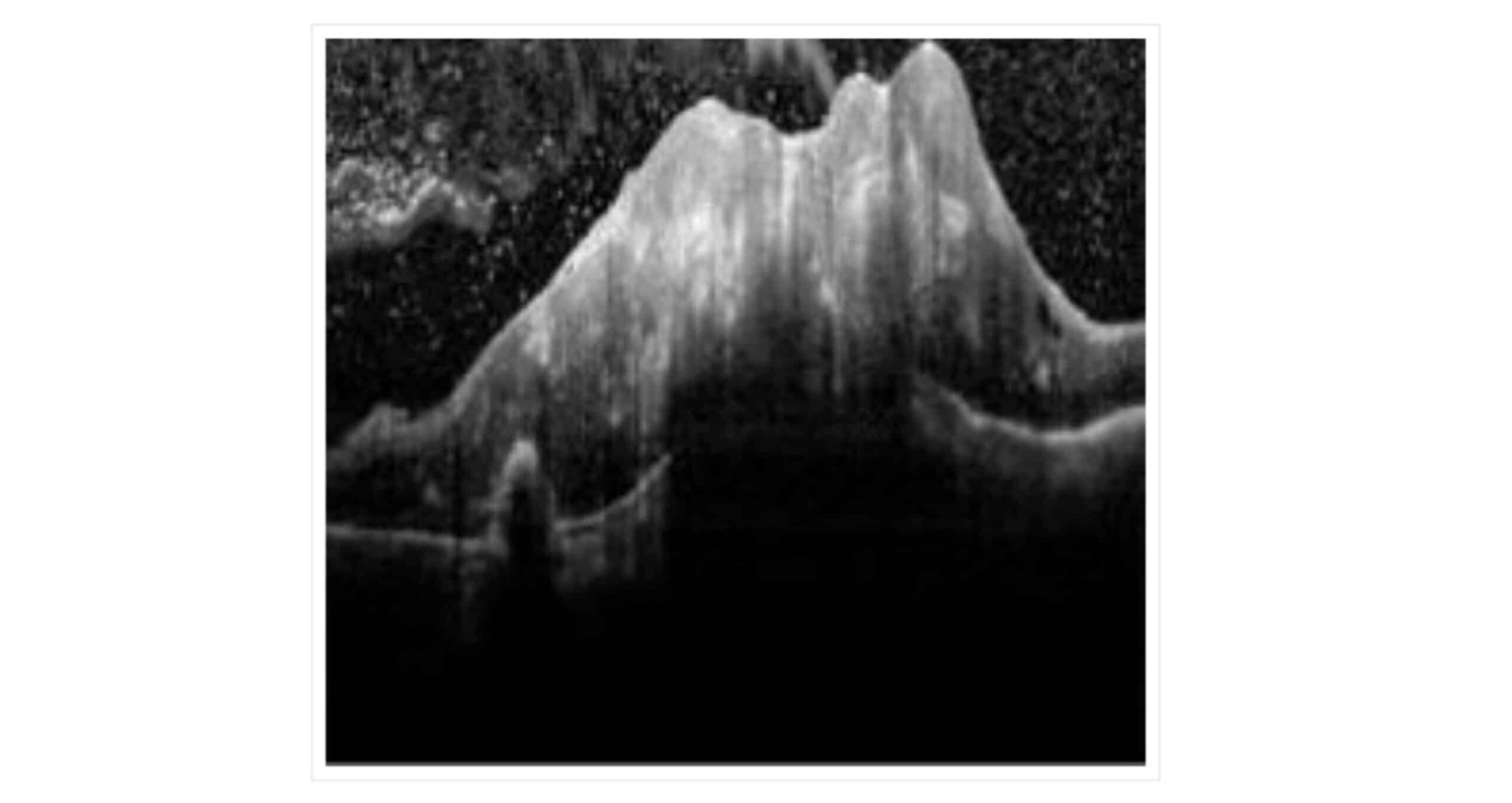 Figure 4: OCT findings: Retinal thickening at the focal site with structural disturbances in the retina featuring areas of high and low reflectance