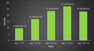 The study yielded insightful results, but more analysis is required to comprehend the findings completely. The study found that compared to other age groups, those in the 50–60 age range had the greatest incidence of HTN (Figure 1). Older people may be more likely to develop HTN due to physiological changes they go through. Arteries become less elastic with aging, rendering it more difficult for them to adapt to fluctuations in blood volume. Furthermore, aging can impact kidney function by increasing salt sensitivity because of some pumps’ lower activity, which increases vascular resistance and vasoconstriction.[23]