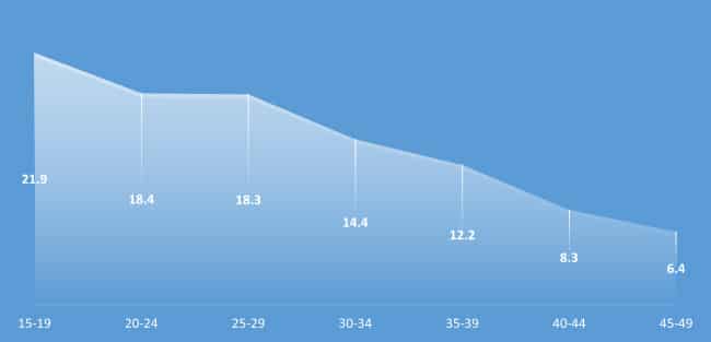 Figure 3: HIV prevalence across different age categories (women 15-49 years)