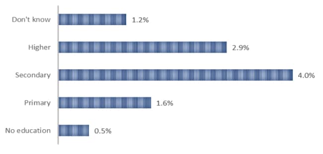 | No education | 6579 | 45.6% | 45.6% | 45.6% |