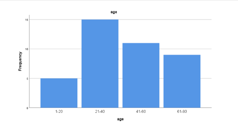 Figure 1: Age According to this, most patients were of the age between 21 to 40 years, while the least group of the age was 1-20 years
