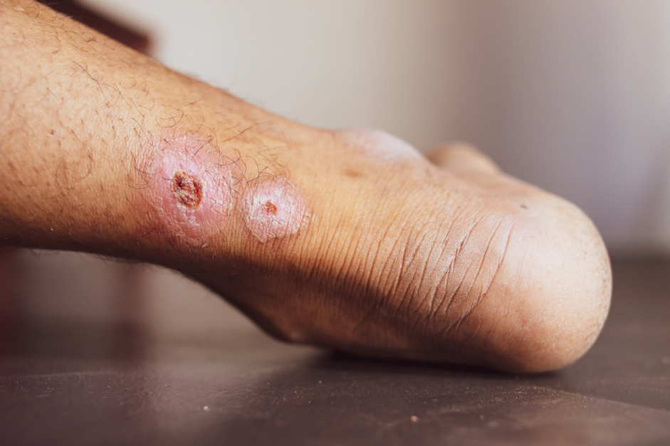 A 58-year-old male patient visited the physician’s office with complaints of a nonhealing skin ulcer on the left leg. The patient has a past medical history of rheumatoid arthritis for the last 10 years and is on methotrexate and low-dose prednisone. The patient has a family history of rheumatoid arthritis.