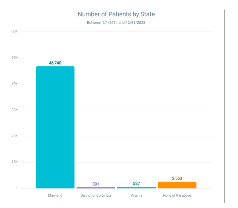 Figure 7: Distribution of patients with latex and latex-fruit allergy by state (Jan 1, 2014 – Dec 31, 2023)