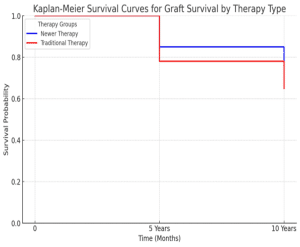 Improved graft survival with newer therapies: Patients treated with newer immunosuppressive therapies (e.g., mTOR inhibitors, belatacept) demonstrated significantly better long-term graft survival compared to those on traditional regimens (e.g., calcineurin inhibitors such as cyclosporine and tacrolimus).