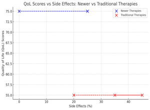 Newer therapies were noted to be associated with fewer side effects, with reports suggesting reductions of about 20-30% in the incidence of tremors and hypertension. The average PROMs scores for newer therapies ranged from 70-80, compared to 50-60 for traditional therapies. Conversely, traditional therapies, particularly CNIs, were frequently associated with significant side effects such as: Tremors: Reported in about 30-40% of patients. While hypertension was observed in 40-50% of patients on CNIs; nephrotoxicity did occur in approximately 20% of patients.[20]