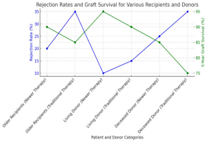 Older recipients: Older patients (aged 60 and above) benefited more from newer immunosuppressive agents, with significantly lower rejection rates and better graft function compared to younger recipients.