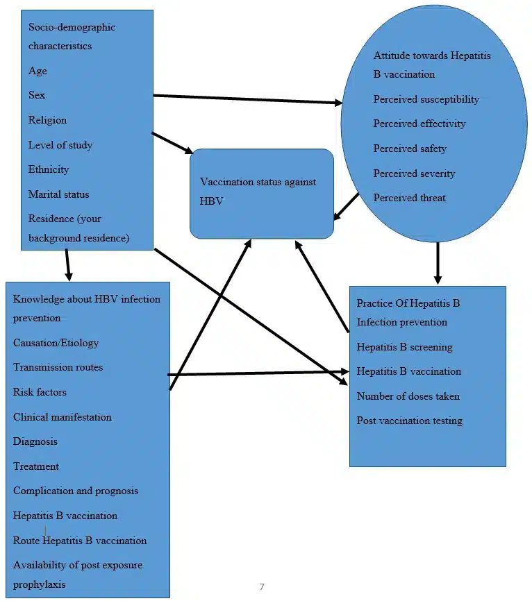 Figure 1: Conceptual Framework to assess Vaccination status against hepatitis B infection and associated factors among students of medicine and health science in college of medicine and health science, University of Gondar, northwest, Ethiopia, 2023