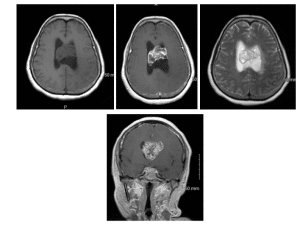 | Central neurocytoma | 20-40 yo | Inferior septum pellucidum and anterior lateral ventricle | Lobulated, enhancing |
