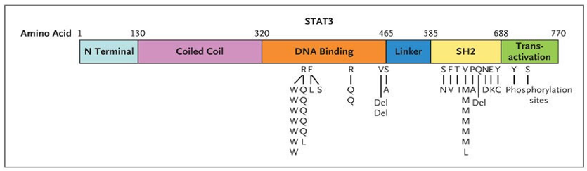 - Minegishi Y, Saito M, Tsuchiya S, et al. Dominant-negative mutations in the DNA-binding domain of STAT3 cause hyper-IgE syndrome. Nature. 2007;448(7157):1058-1062. doi:10.1038/nature06096 PubMed | Crossref | Google Scholar