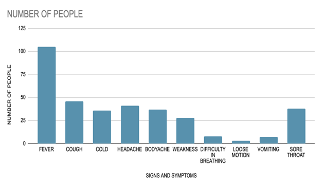 Figure 3: Bar graph showing the signs and symptoms present in the patients