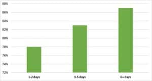 Length of hospital stay: Parent satisfaction scores increased with longer hospital stays for their children. Children who spent more time in hospital settings led parents to demonstrate greater satisfaction with treatment services. A longer hospital stay allows nurses and patients to develop relationships because patients spend additional time getting to know their nursing staff.[25] When patients stay longer at the hospital, both parents and families have multiple chances to understand the outstanding level of service, which ultimately results in happier patients. The research implies that when parents spend more time in hospital care, they develop stronger trust and feel more satisfied.[26]