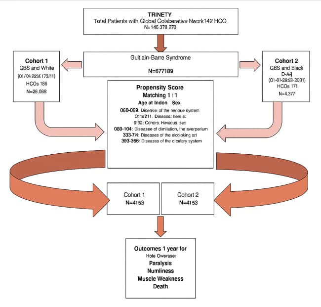 Cohort identification and index date: Patients with GBS were identified by ICD-10-CM G61.0. Race was categorized as Black/African American or White/Caucasian from structured EHR fields. The index date was the first recorded GBS diagnosis.