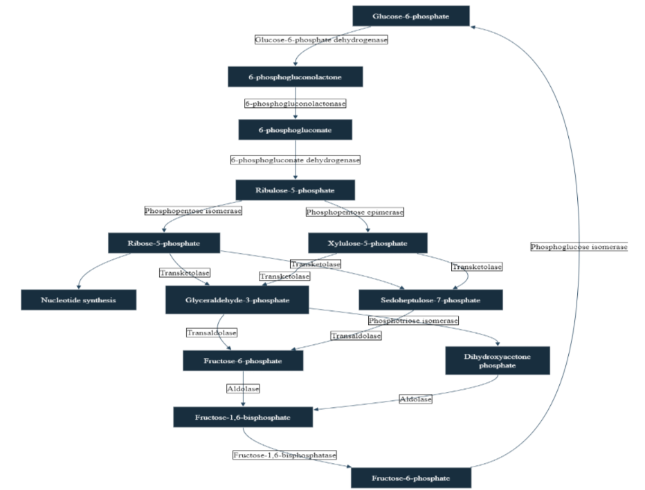 Figure 1: The diagram illustrates the complex Pentose Phosphate Pathway, a metabolic process crucial for cellular function