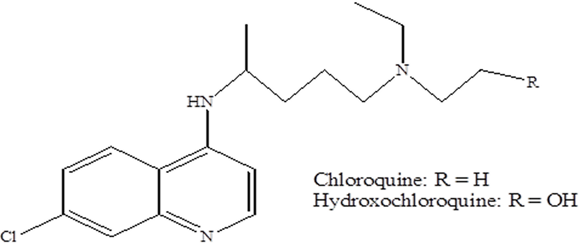 Figure 1: Chemical structures of chloroquine and hydroxychloroquine