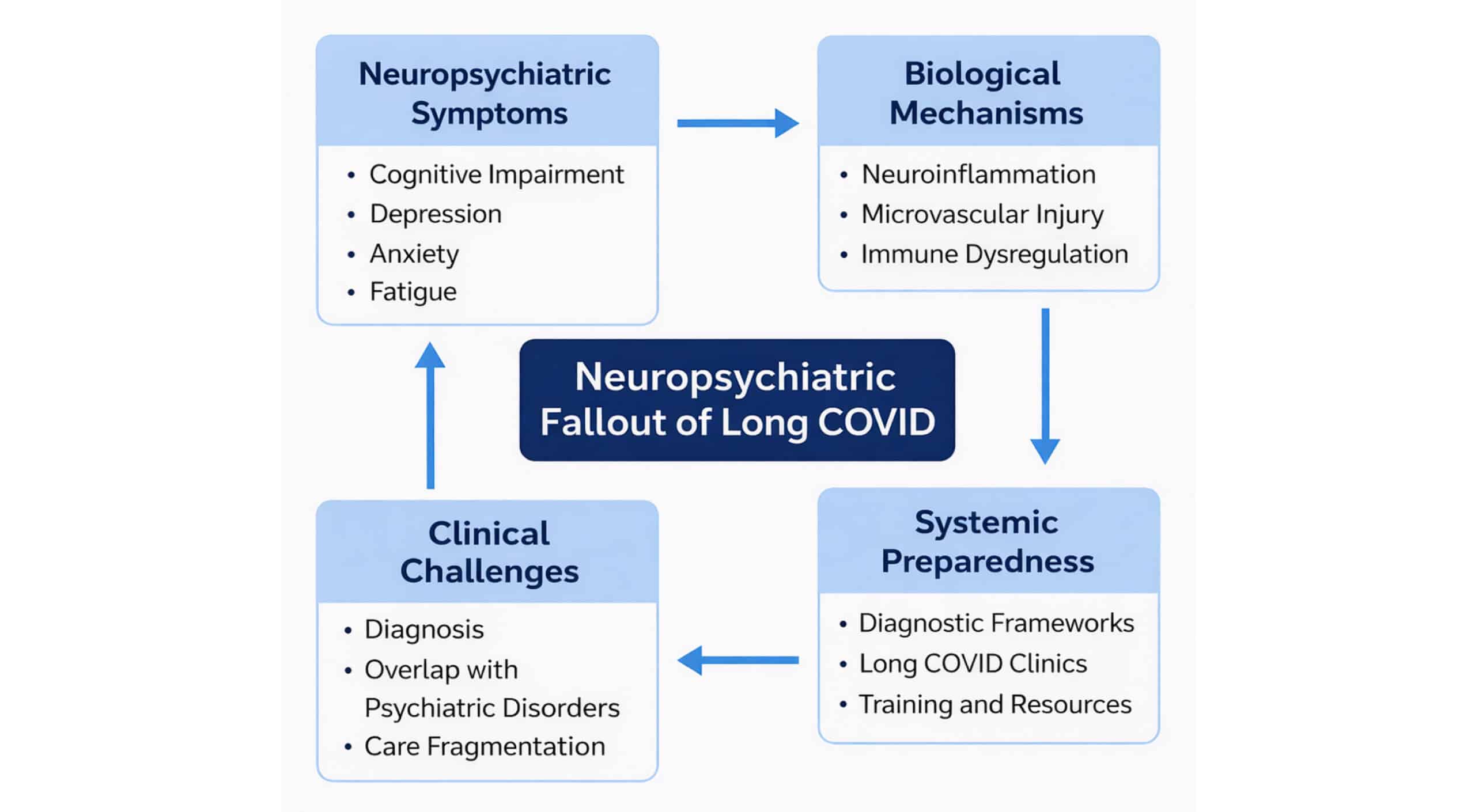 Pereira WO, Morris K. The Neuropsychiatric Fallout of Long COVID: Clinical, Biological, and Health-System Readiness Challenges. medtigo J Neurol Psychiatr. 2025;2(4):e3084243. doi:10.63096/medtigo3084243 Crossref